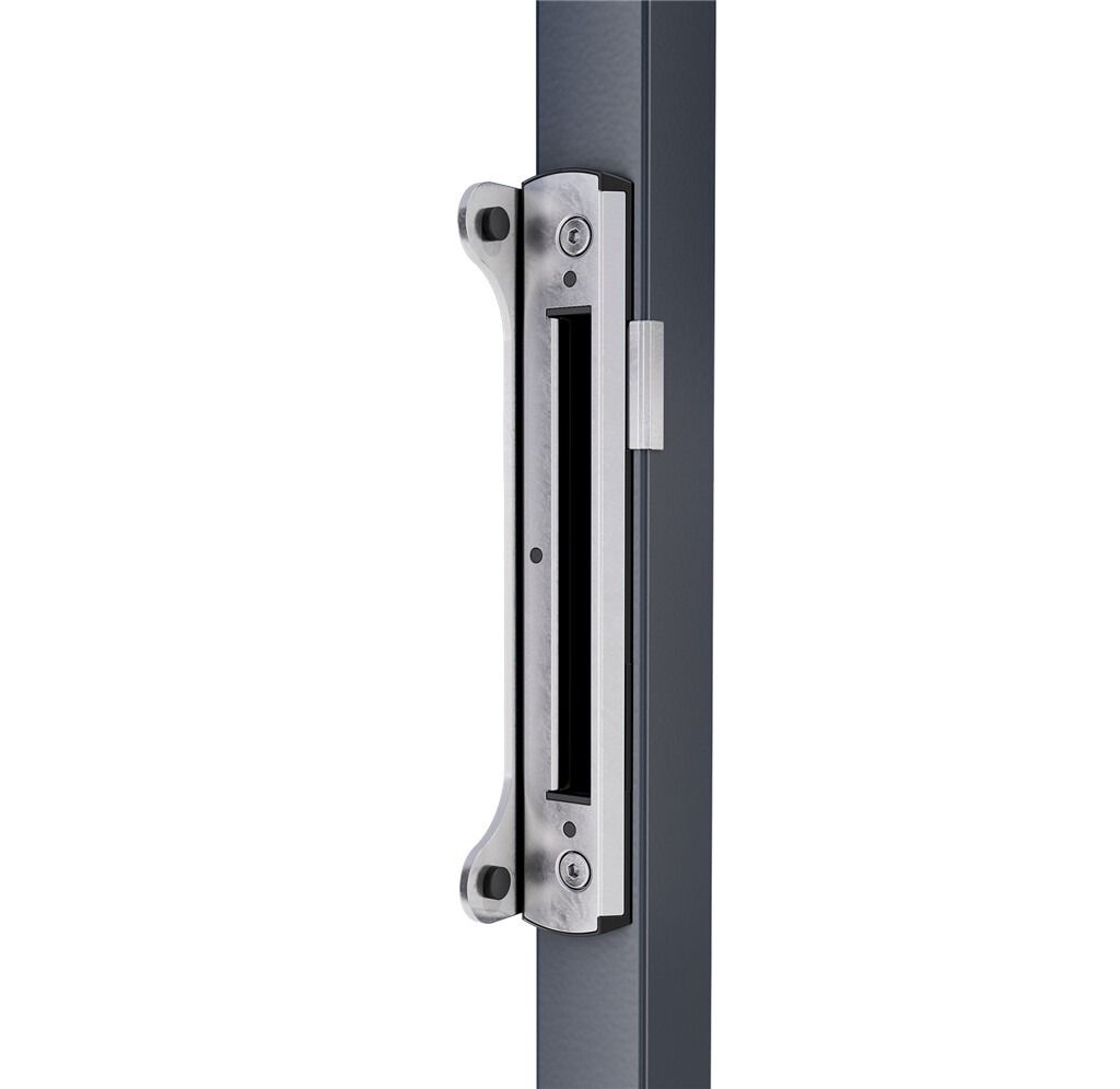 Insteekslot met 100% roestvrijstalen mechanisme. De valhaak en regelbare dagpen, beide eveneens in roestvrij staal, zorgen in combinatie met de correcte aanslag voor een stevige sluiting waarbij de poortvleugels niet uit elkaar getrokken kunnen worden. Het slot kan in metalen, aluminium en PVC poorten ingewerkt worden. Dankzij het innovatieve "Click-It" bevestigingssysteem is het insteekslot secondensnel gemonteerd.