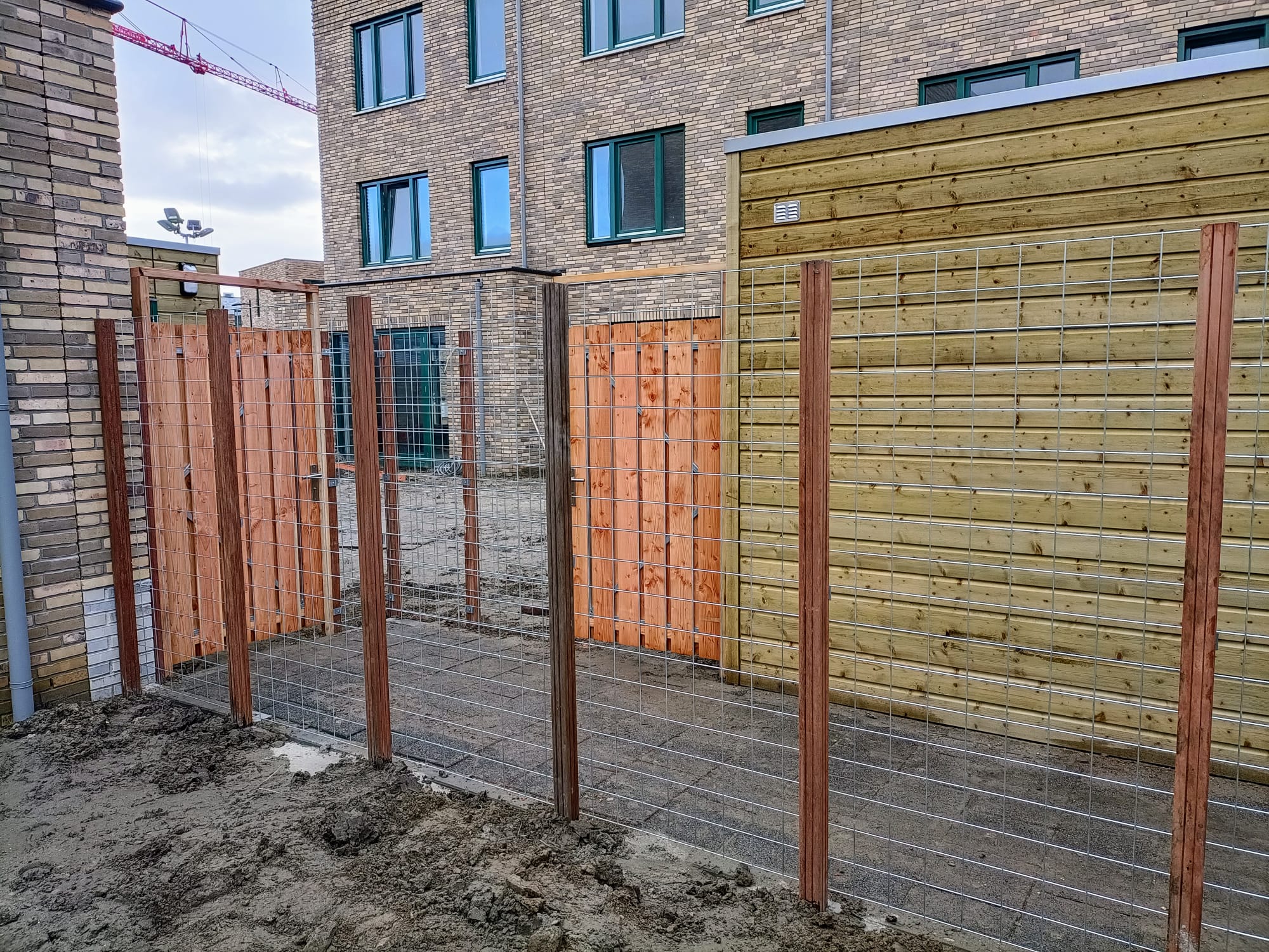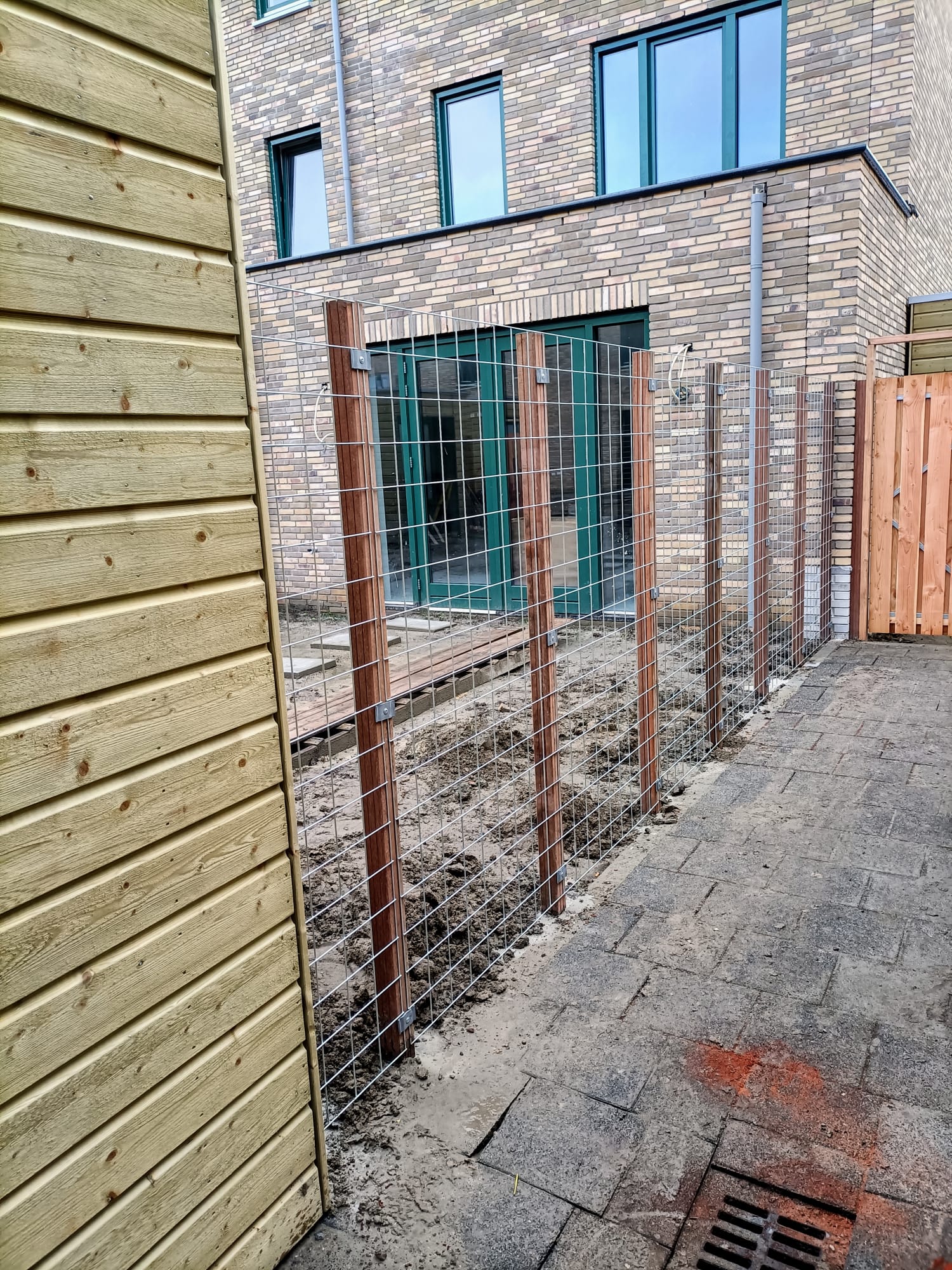 Een voorbeeld van onze gaaspanelen met hardhoutenpalen, gemonteerd door het montageteam. Dit unieke design geeft een glimps in de eindeloze mogelijkheden bij Hekwerkonline. Combineer verschillende producten en stel jouw droom tuinafscheiding samen.