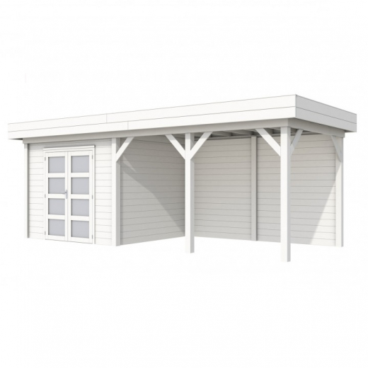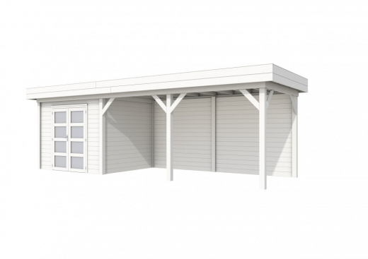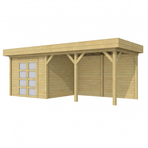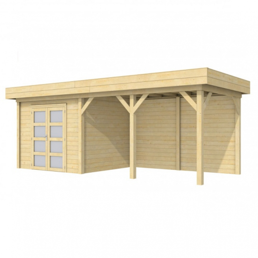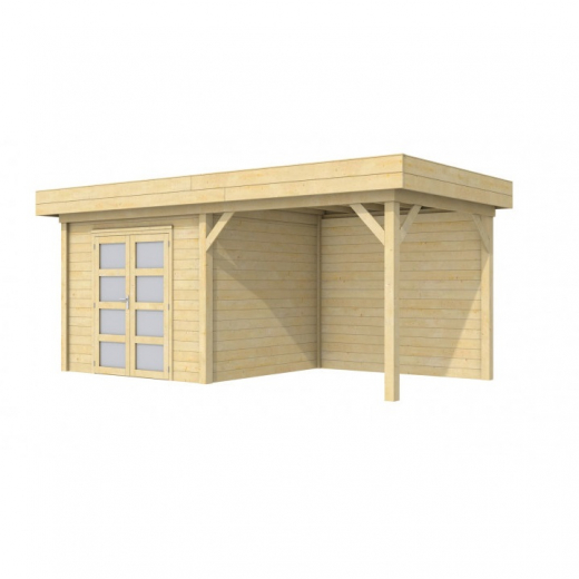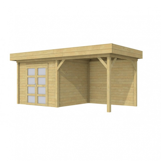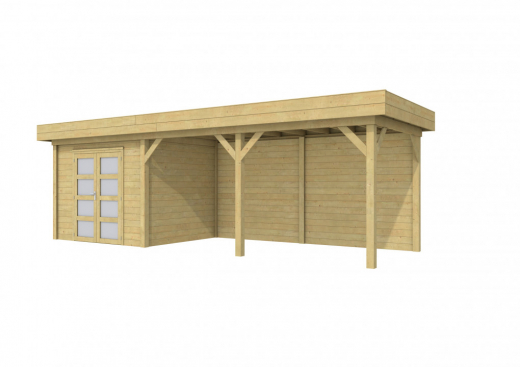 - Wandelementen uit blokhutprofiel met dikte 28 mm.