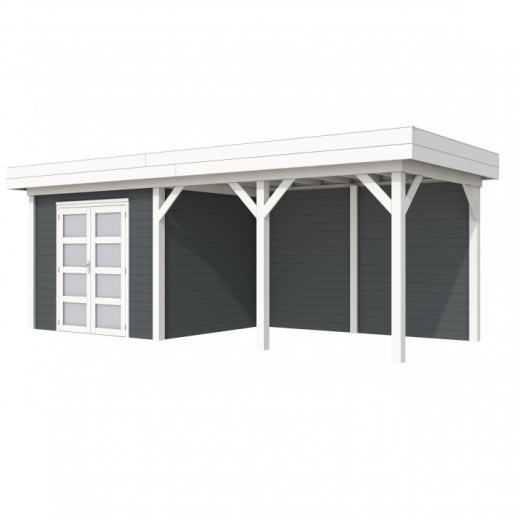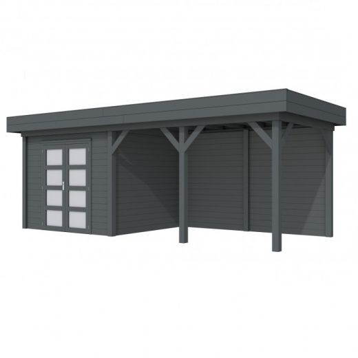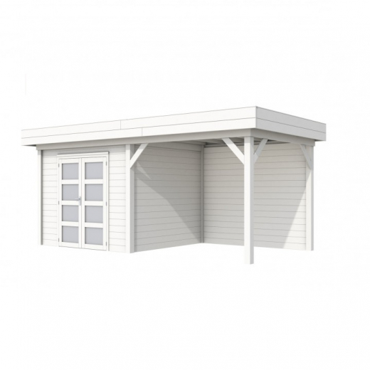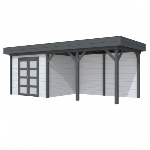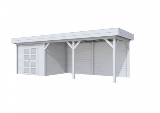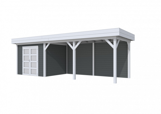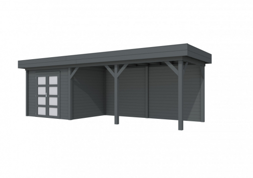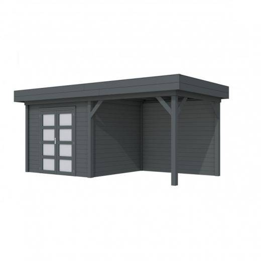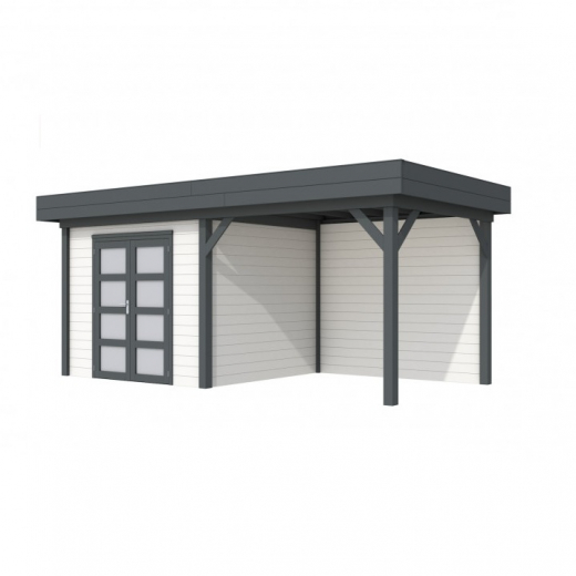 Met dit vurenhout tuinhuis met luifel heb je een tuinhuis en overkapping in één! Het tuinhuis heeft meer dan genoeg ruimte voor opslag van bijvoorbeeld je grasmaaier, fiets en/of gereedschap. Onder de luifel is er een ruim oppervlak voor een fijne loungeset, zodat je in de zomer lekker overdekt kunt zitten.