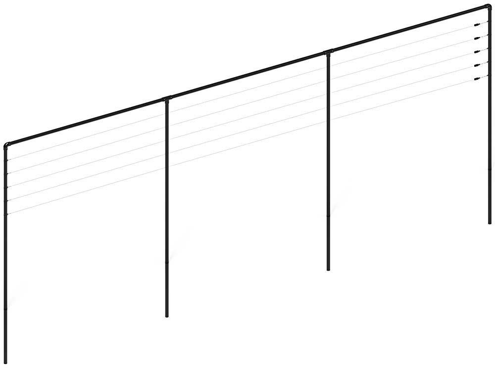 De leiboom schutting is verkrijgbaar in verschillende maten. De leibomen constructie is verkrijgbaar vanaf 3 meter tot een maximale lengte van 12 meter. Met behulp van stevige palen en kwalitatieve spandraden creëer je een stevige stelling voor jouw leiboom. De ijzeren palen voor de leibomen constructie zijn standaard 4 meter lang, waarvan 1 meter de grond in gaat. Dit betekent dus dat 3 meter stelling boven de grond uitsteekt.